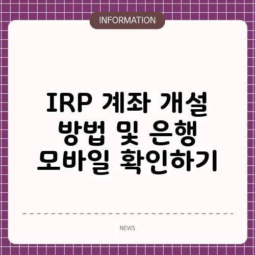 IRP 계좌 개설 방법 및 은행 모바일 확인하기
