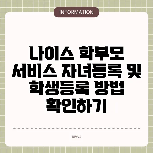 안녕하세요! 오늘은 많은 학부모님들이 궁금해하시는 나이스 학부모 서비스와 함께 자녀등록 및 학생등록 방법에 대해 자세하고 친절하게 안내드리려고 합니다. 처음에는 약간 복잡하게 느껴질 수도 있지만, 차근차근 따라가시면 누구나 손쉽게 등록 과정을 마치실 수 있습니다. 이번 포스팅에서는 나이스 학부모 서비스 방법과 함께 자녀등록 방법, 학생등록 방법 그리고 관련 FAQ까지 모두 상세히 설명드릴 예정이니, 끝까지 읽어보시고 궁금증을 해결하시길 바랍니다. 자, 그럼 시작해 볼까요?