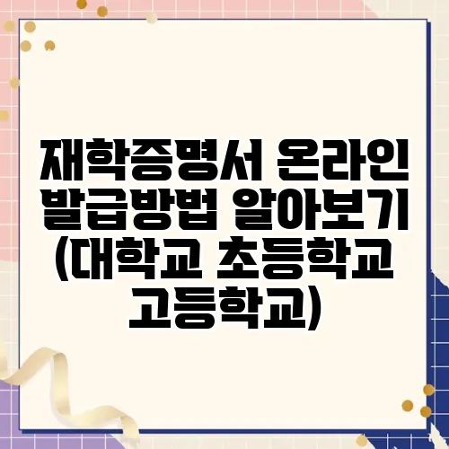 안녕하세요! 오늘은 재학증명서 발급에 관한 아주 실용적이고 상세한 정보를 준비했습니다. 특히, 온라인 재학증명서 발급 방법을 비롯해 대학 재학증명서, 초등학교 재학증명서, 고등학교 재학증명서를 쉽고 빠르게 발급받는 방법에 대해 안내드릴 예정입니다. 처음에는 조금 어렵거나 복잡하게 느껴질 수 있지만, 차근차근 따라 하시면 누구든 채계적이고 편리하게 사용할 수 있으니 걱정하지 않으셔도 됩니다. 이 포스팅을 통해 재학증명서의 필요성과 온라인 발급 절차, 그리고 실무에 바로 활용할 수 있는 팁까지 한 번에 정리해 드리겠습니다. 자, 그럼 우리 함께 자세히 살펴보면서 여러분의 시간과 노력을 절약하는 방법을 알아보도록 하까요!